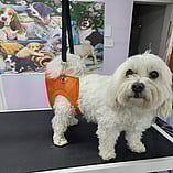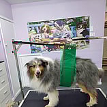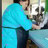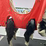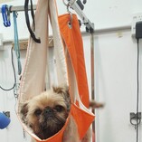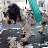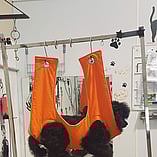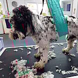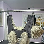 These pictures show other Groomers putting into use Julie's Hand made Grooming Hammocks and other products.